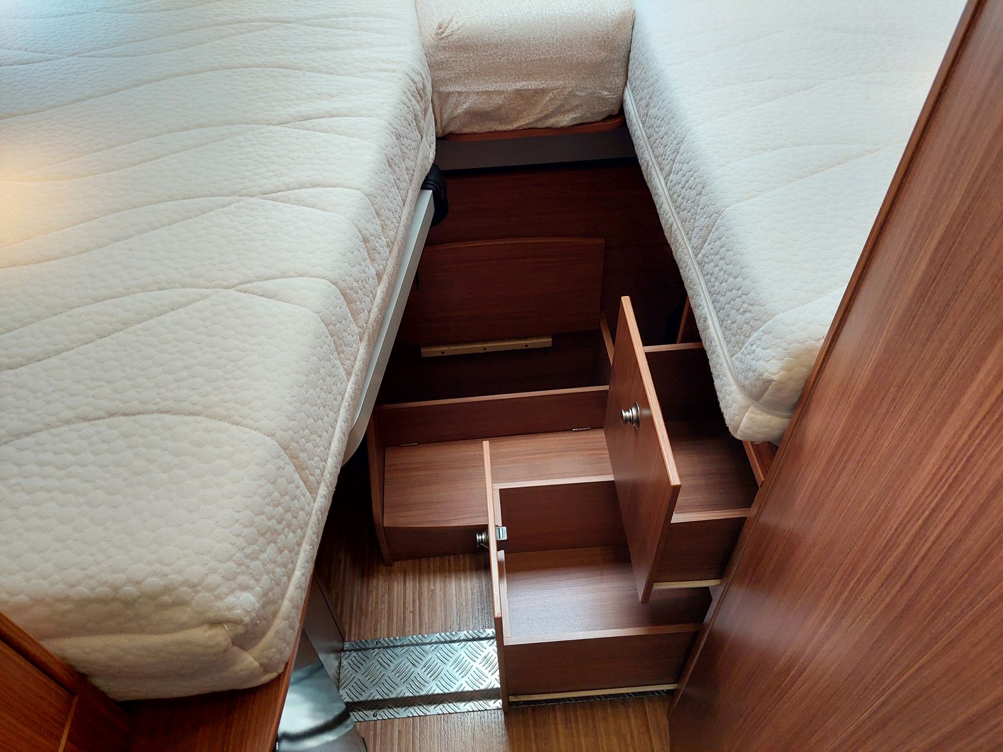 – Bedmaten achterin: lengtebedden 195 x 80 en 185 x 80 of dwars 186 x 140