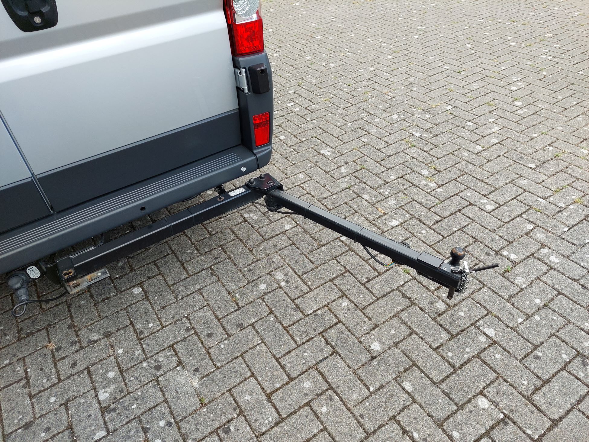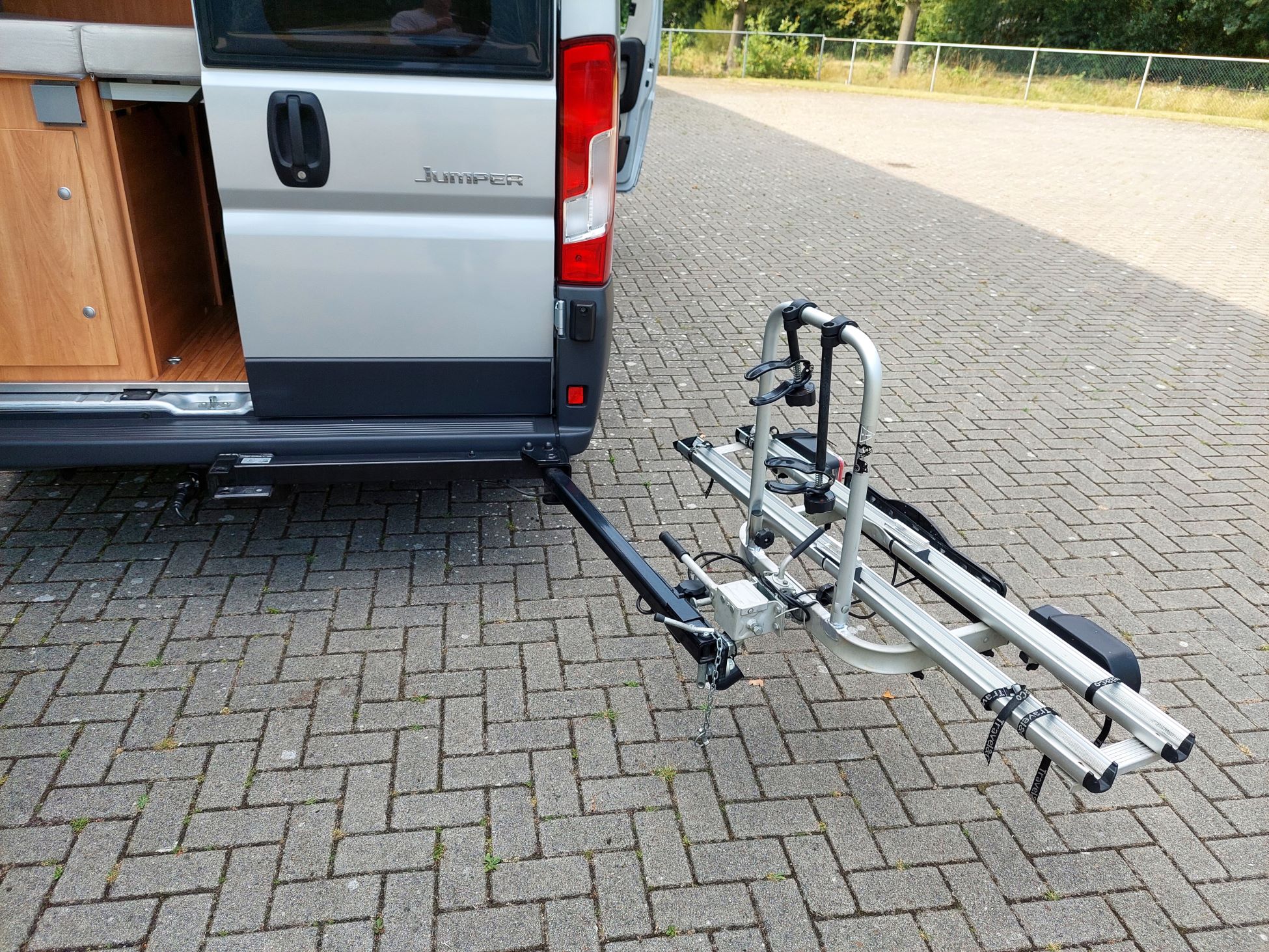 – Fietsenrek op trekhaak belastbaar tot 60 kg (2 E-bikes) en met belading wegschuifbaar waardoor achterdeuren bereikbaar