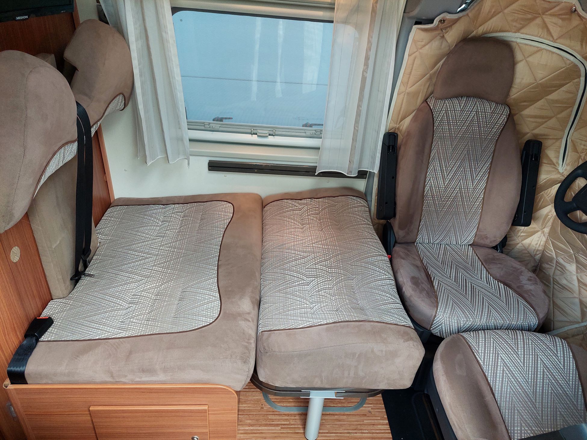 Knaus buscamper Box Star ME Freeway zeer ruime verhoogde bus met enkele bedden en 4 zitplaatsen op kenteken met gordels (zitbank is in de breedte verstelbaar).